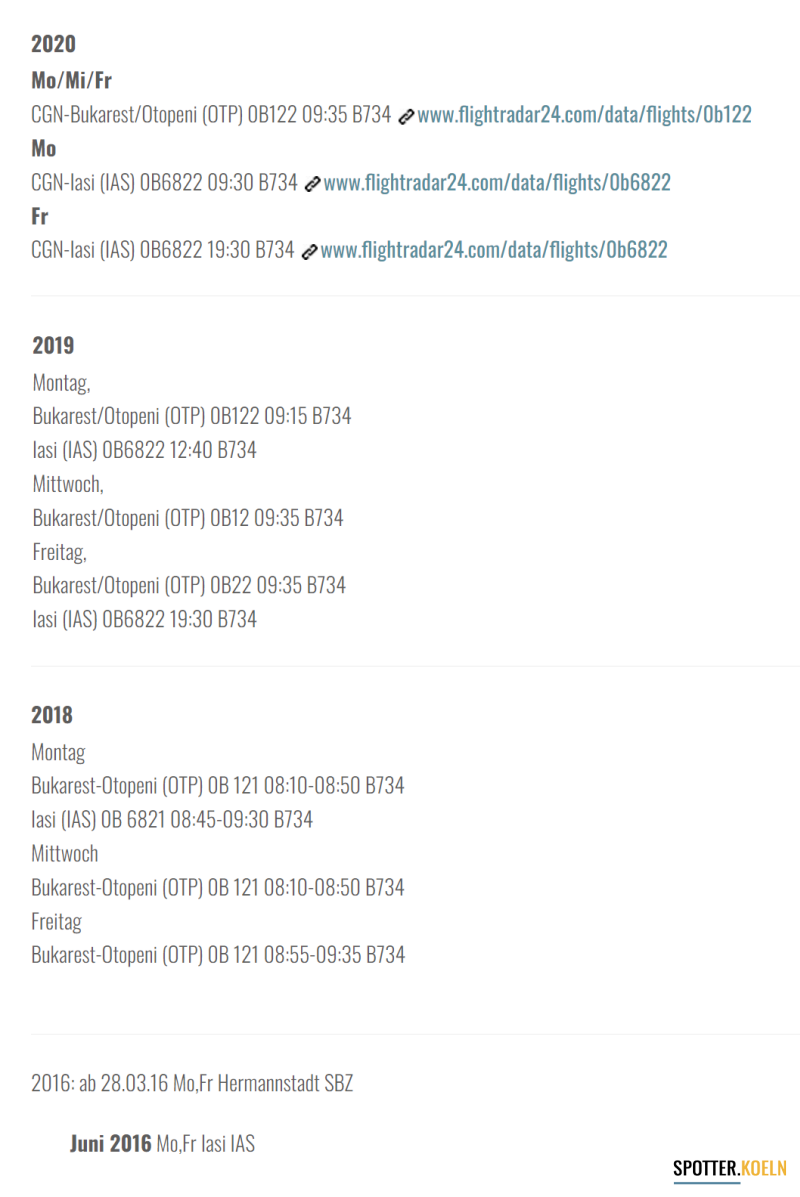 Die rumänische Low-Cost-Airline flog ab dem 16. Juni 2014 montags, mittwochs und freitags in die rumänische Hauptstadt Bukarest.