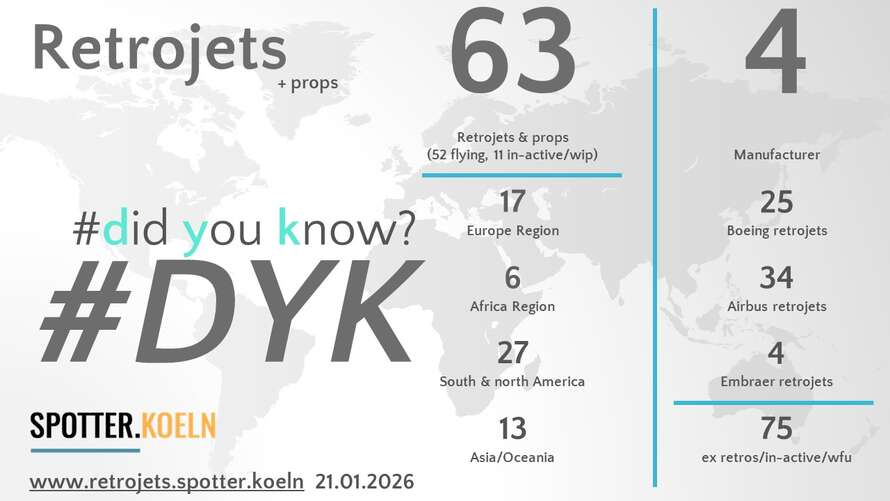 | 63 Retrojets | 52 aktiv | 11 in-aktiv/WIP