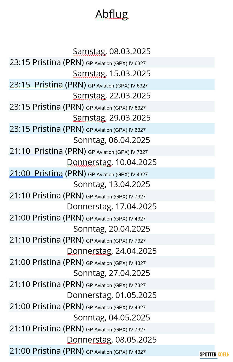 | GP Aviation ist eine bulgarische Charterfluggesellschaft mit Sitz in Sofia und Basis Flughafen Sofia, die hauptsächlich Verbindungen nach Pristina anbietet. Das Unternehmen wurde im Jahr 2020 von dem Schweizer Ganesh Piga gegründet. GP Aviation fliegt ab 08.03.2025 Pristina-CGN -Pristina