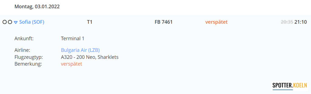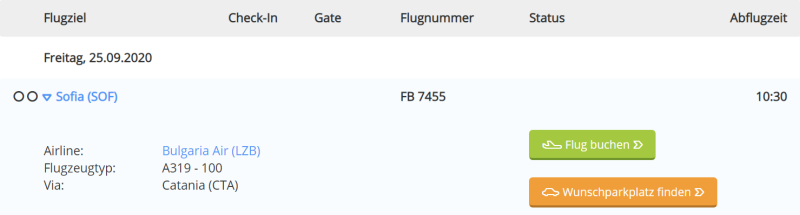 Bulgaria Air (bulgarisch България Ер) ist die nationale Fluggesellschaft Bulgariens mit Sitz in Sofia und Basis auf dem Flughafen Sofia. 03. Jan.22 wurde ein Flug der Bulgaria Air von Sofia nach Köln durchgeführt. Im September 2020 sind einige Flüge ab Köln Bonn geplant, z.B.: 29.09.2020 17:25 VAR-CTA-CGN FB7459 Airbus A319-100 |