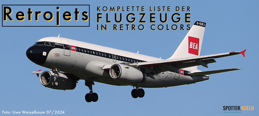 SPOTTER.KOELN´s komplette Liste der Flugzeuge in Retrojets. Diese Liste ist auch als PDF-Download verfügbar und wird regelmäßig aktualisiert. |