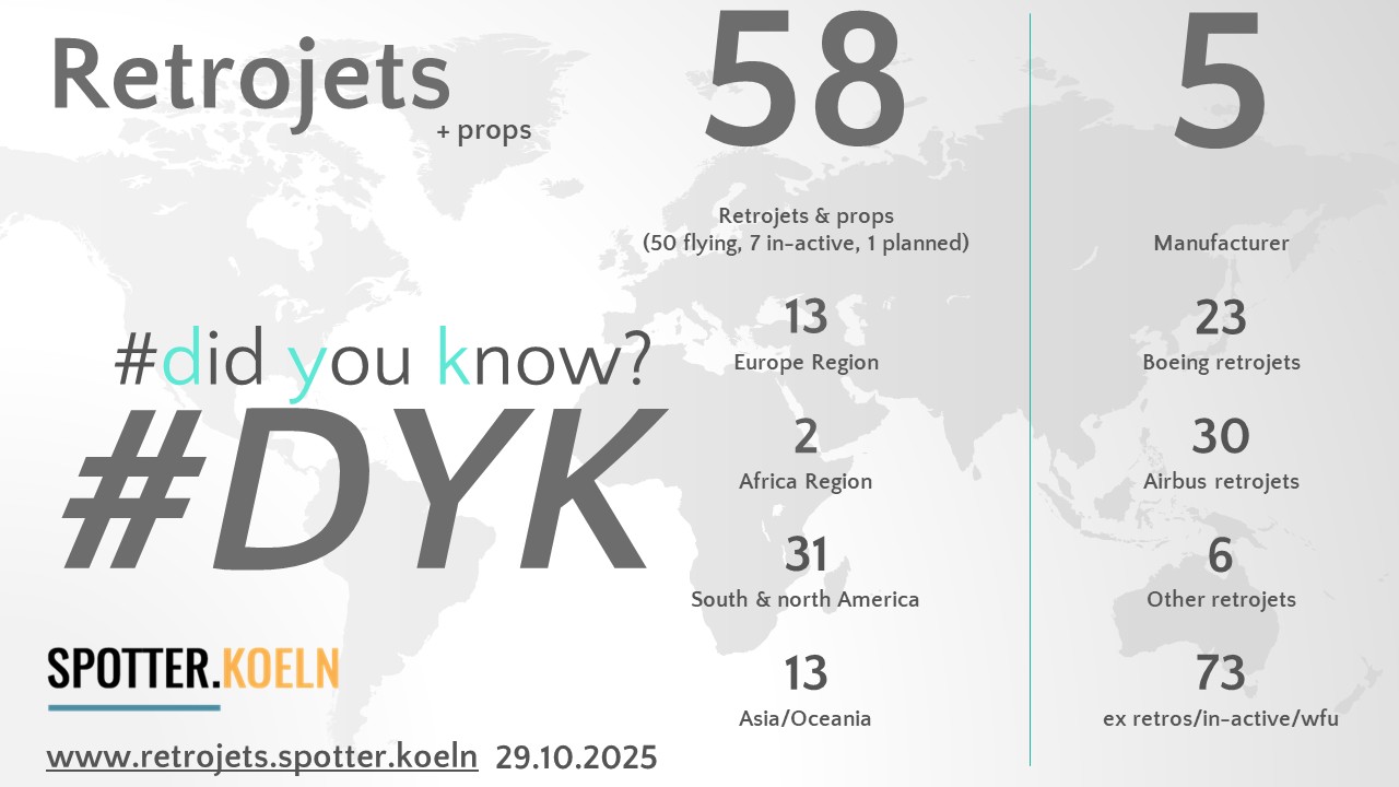 | 58 Retrojets | 49 aktiv | 8 in-aktiv | 1 WIP