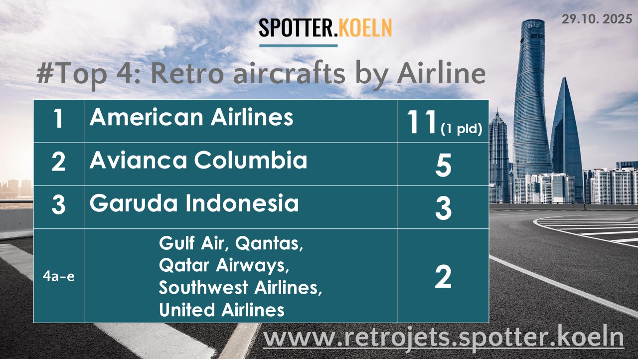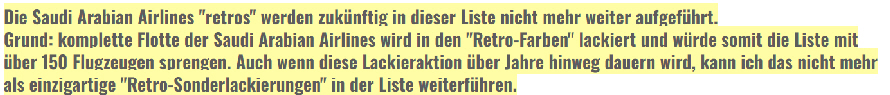 Die Saudi Arabian Airlines "retros" werden zukünftig in dieser Liste nicht mehr weiter aufgeführt. Grund: ...